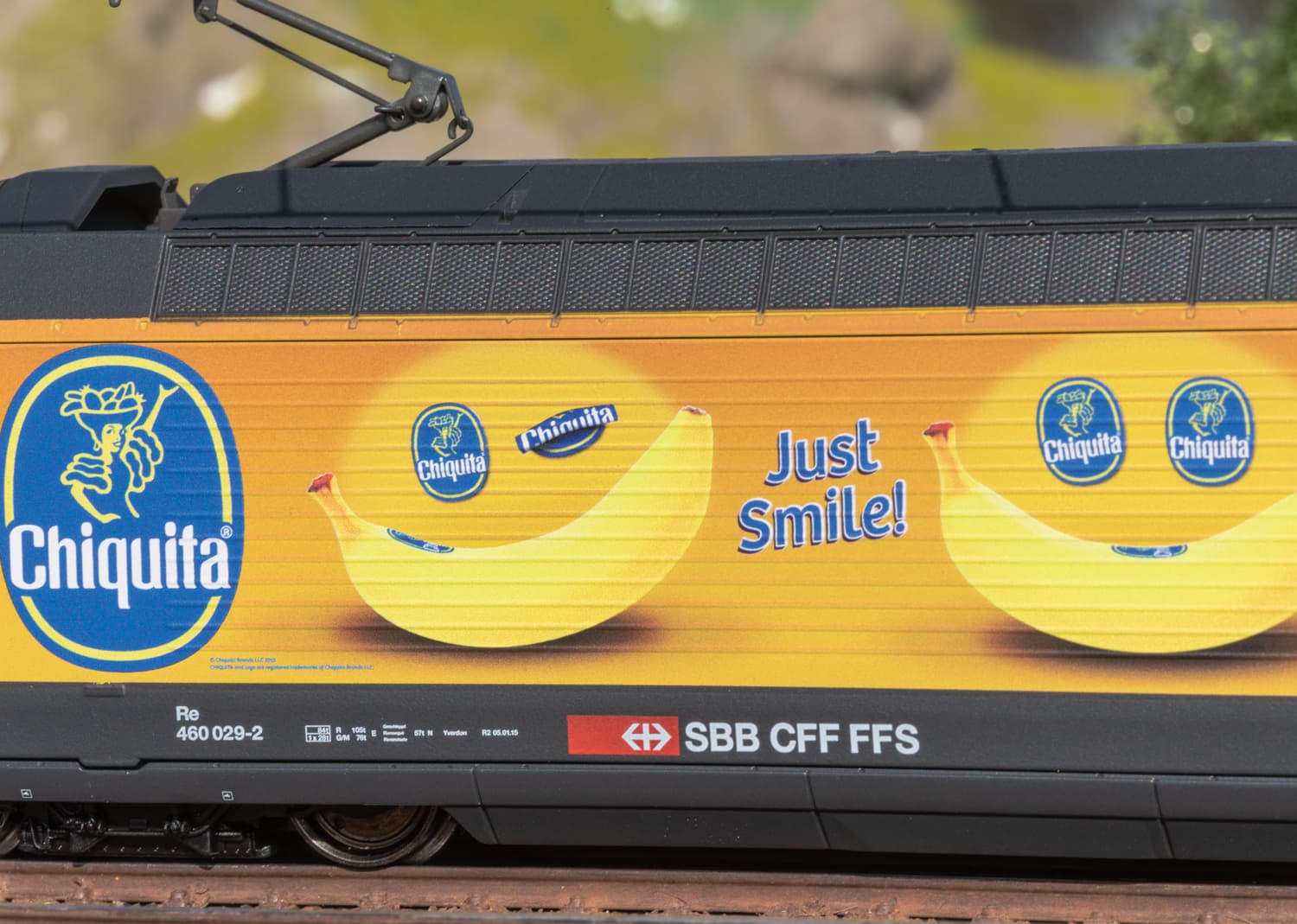 Die Elektrolokomotive Re 460 ist eine detailgetreue Nachbildung der schnellen Mehrzwecklokomotive der Schweizerischen Bundesbahnen (SBB) im auffälligen Chiquita-Werbedesign. Dieses Modell ist für Sammler und Liebhaber ab 15 Jahren geeignet.