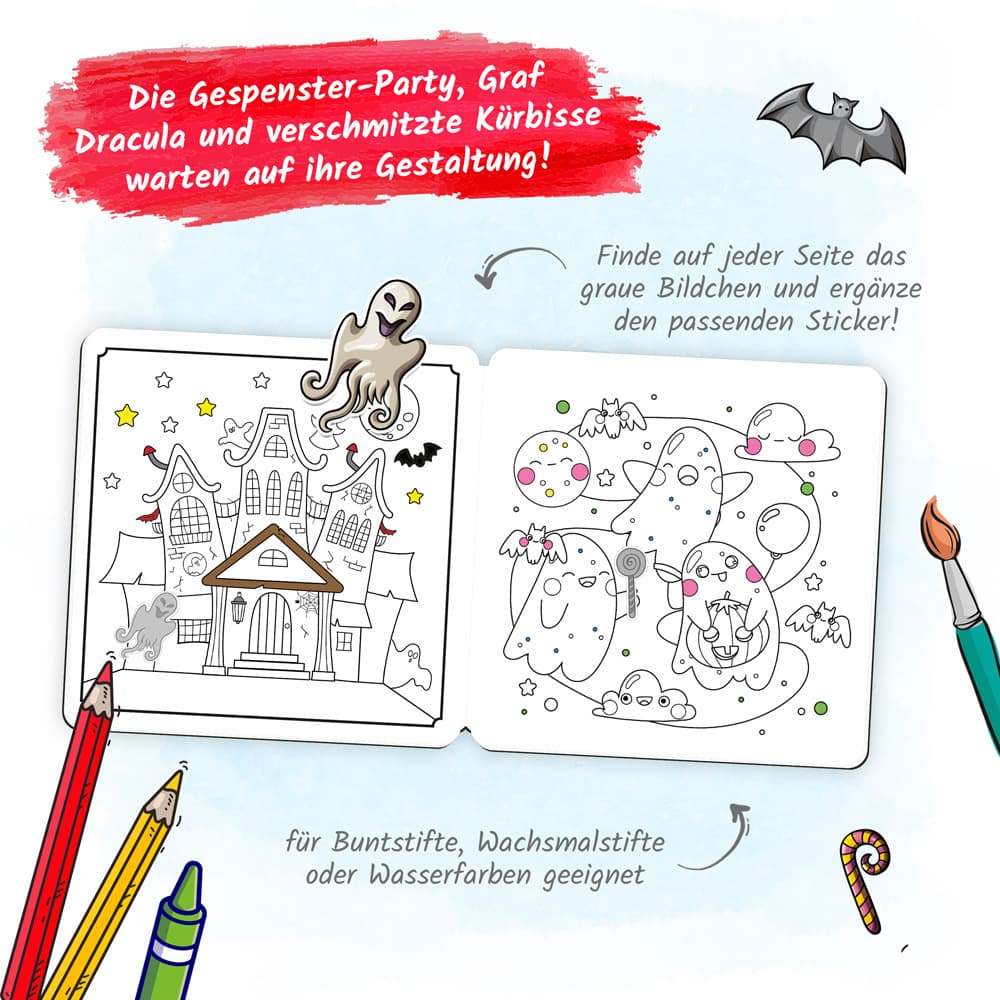Trötsch Malbuch Stickermalbuch Gruselmalbuch mit Stickern Halloween