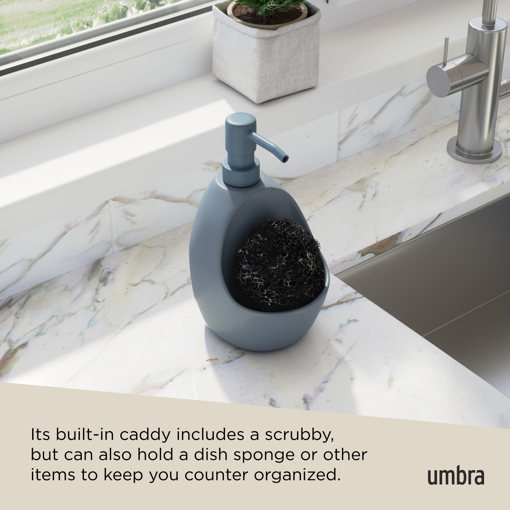 Joey's schlichtes und modernes Design macht diesen Seifenspender zu einer großartigen Ergänzung in Küche und Bad. Joey's integrierter Caddy bietet Platz für einen Topfschwamm (im Lieferumfang enthalten). Dank seines Eigengewichts kann die Pumpe einfach einhändig bedient werden. Joey wird für seine Vielseitigkeit geliebt, denn sein eingebauter Caddy bietet ordentlichen Stauraum für Ihre Badutensilien wie Haargummis, Haarklammern, Haarspangen oder Zahnseide - er ist großartig für all die kleinen Utensilien, die Ihre Arbeitsplatte überfluten und die Reinigung so viel unangenehmer machen. Joey sieht gut aus und nimmt mit 10x13x20cm nur wenig Platz auf Ihrer Arbeitsfläche in Anspruch. Der praktische Seifenspender mit Caddy verfügt über eine Füllkapazität von 590ml und wird mit einem Topfschwamm geliefert.