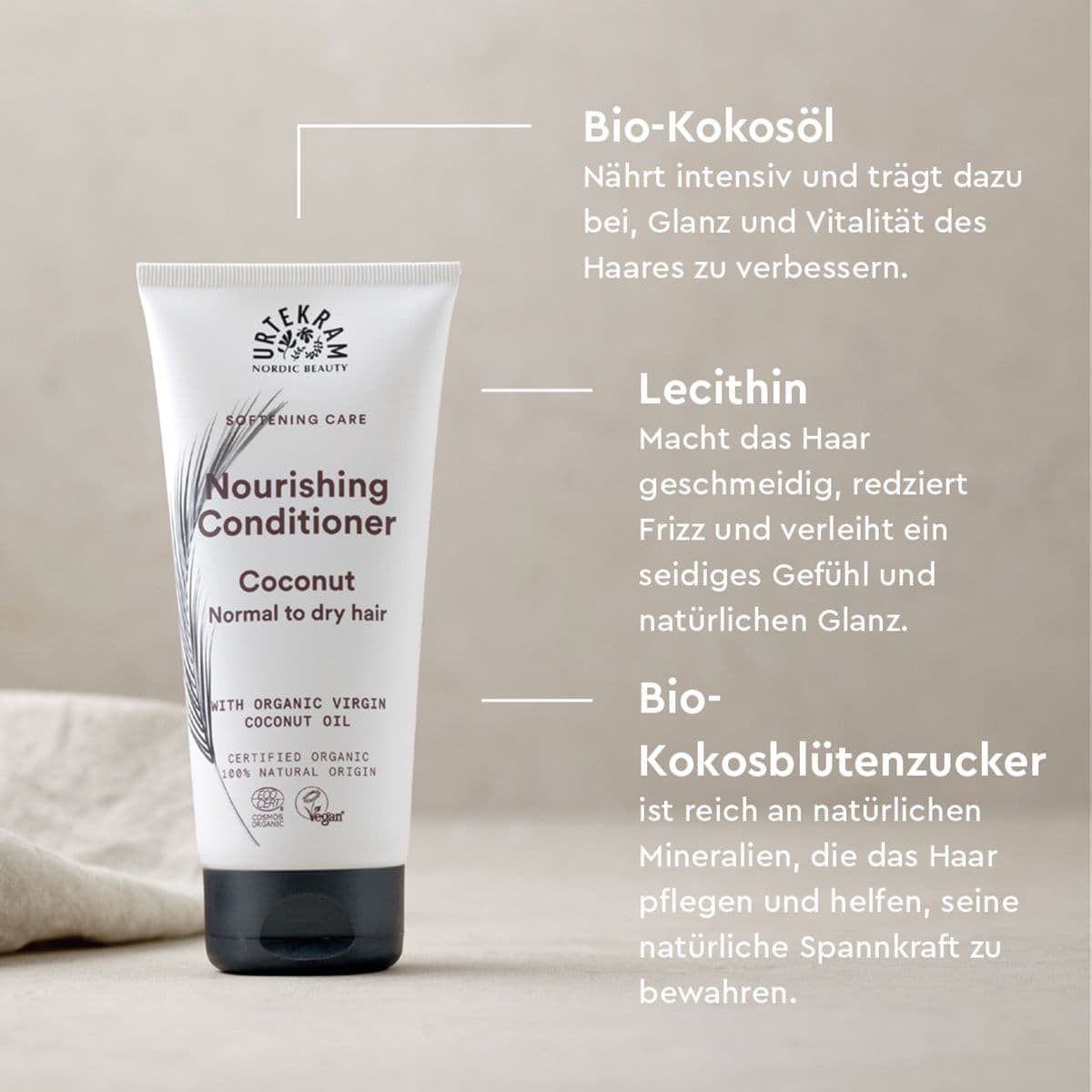 Der URTEKRAM Coconut Nourishing Conditioner ist eine Haarpflege, die speziell für normales bis trockenes Haar entwickelt wurde. Die Formel mit Inhaltsstoffen natürlichen Ursprungs verleiht dem Haar ein gepflegtes Aussehen.