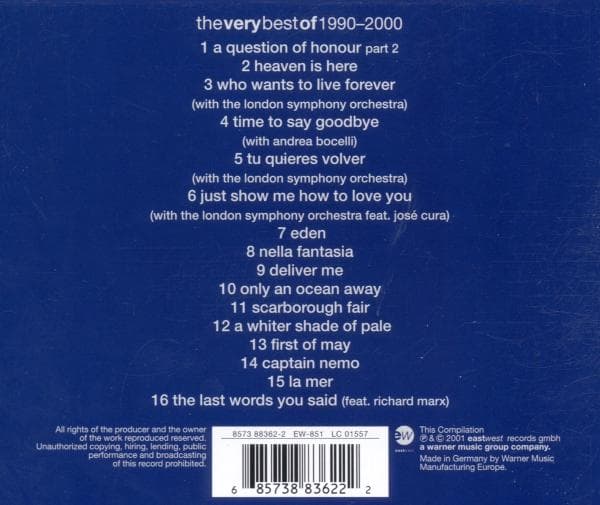 Die CD „The Very Best Of 1990-2000“ vereint die größten Erfolge der Ausnahmekünstlerin Sarah Brightman aus einer ganzen Dekade. Diese Zusammenstellung bietet einen umfassenden Einblick in das musikalische Schaffen der Sängerin.
