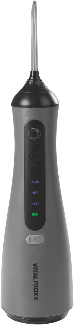 Erlebe eine gründliche, erfrischende und moderne Zahnpflege, wie du sie verdienst. Mit der VITALmaxx Munddusche erhältst du ein praktisches Komplettset mit 8 multifunktionalen Aufsätzen – für eine effektive Reinigung deiner Zähne und Zahnzwischenräume. Das Zahnreinigungstool sorgt für ein frisches Mundgefühl und hilft gegen schlechten Atem. Denn dank der 360° drehbaren Düsen erreichst du selbst schwer zugängliche Stellen und entfernst Speisereste besonders gründlich. Die 3 Reinigungsmodi – Standard, Soft und Pulse – ermöglichen dir zudem eine individuelle Reinigung nach deinen Bedürfnissen. Die Hochfrequenz-Wasserflusstechnologie arbeitet mit 1800 Impulsen pro Minute und erzeugt einen feinen, konstanten Wasserstrahl von ca. 0,8mm. So werden Rückstände effektiv gelöst – auch dort, wo herkömmliche Zahnbürsten oft nicht hingelangen. Der 320-ml-Wassertank reicht bequem für eine komplette Anwendung und lässt sich zur Reinigung einfach abnehmen. Dank der kabellosen Bedienung und des kraftvollen 1300mAh-Akkus bleibst du flexibel, ob zu Hause oder unterwegs. Die Aufladung erfolgt anschließend ganz bequem per USB-C (Ladekabel enthalten). Ob du eine Zahnspange hast oder deine tägliche Zahn- und Mundhygiene auf einen ganz neuen Level heben möchtest: Mit den 8 praktischen Aufsätzen, darunter Spezialdüsen für Zahnspangen, Zungenreinigung und Zahnfleischpflege, bist du für nahezu alles bestens gerüstet. Hol dir jetzt die VITALmaxx Munddusche mit 8 vielseitigen Aufsätzen als ideale Ergänzung zur täglichen Zahnpflege! Spritzwassergeschützt (IPX6).