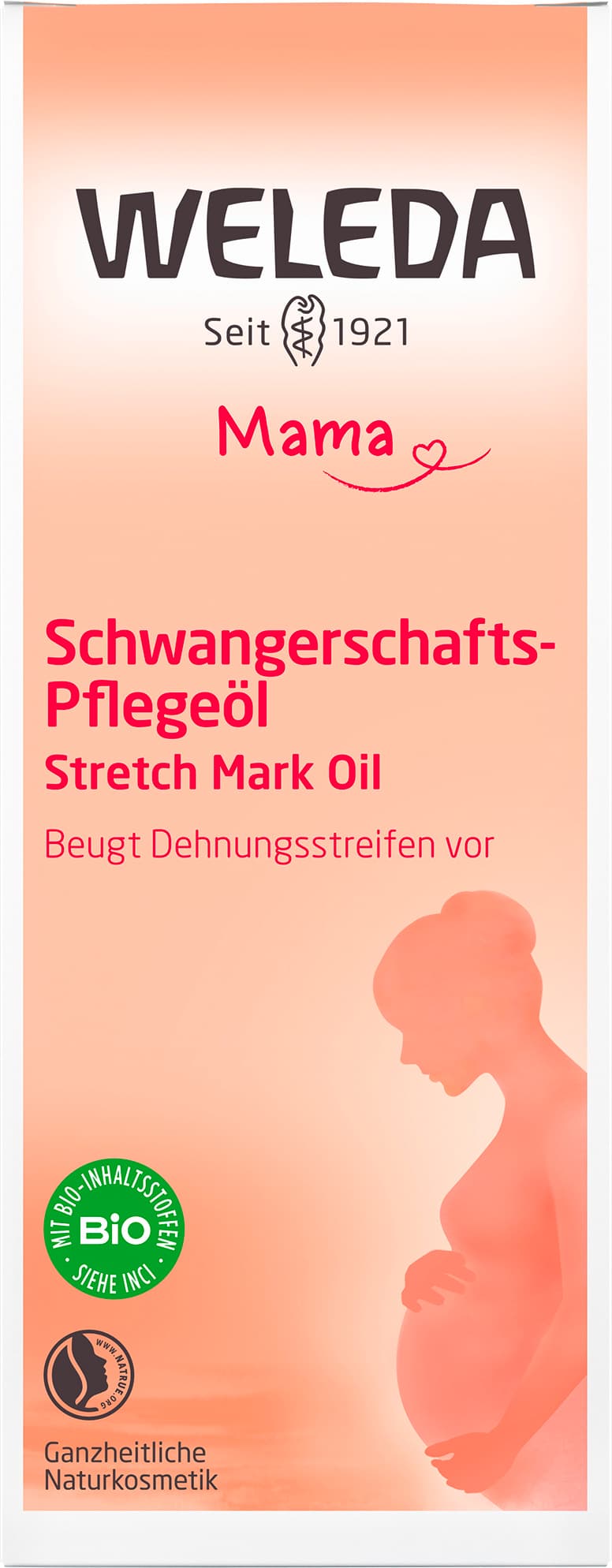 AnwendungshinweisBeugt Dehnungsstreifen wirksam vor Wie bleiben Bauch, Brust und Po möglichst frei von Schwangerschaftsstreifen? Das speziell entwickelte Schwangerschafts-Pflegeöl unterstützt die Haut bei der Höchstleistung, die sie in der Schwangerschaft vollbringt. Mandel-, Jojoba-, Weizenkeimöl und ein Auszug aus Arnikablüten helfen, die Elastizität der Haut zu verbessern und bei regelmäßiger Massage Dehnungsstreifen vorzubeugen. Die Haut wird seidig-zart, glatt und geschmeidig. Mit natürlichen ätherischen Ölen aus Neroli und Rose. Anwendung: Weleda Schwangerschafts-Pflegeöl wird mit leichten, kreisenden Bewegungen großflächig auf Bauch, Oberschenkel, Po und Brust einmassiert. Verwendung: - Beugt bei regelmäßiger Anwendung Schwangerschaftsstreifen vor - Bereits bestehende Schwangerschaftsstreifen bilden sich zurück Wirksamkeit dermatologisch belegt - sogar bei bereits bestehenden Schwangerschaftsstreifen. Hautglätte: 2 Monate: +21 % 4 Monate: +77 %