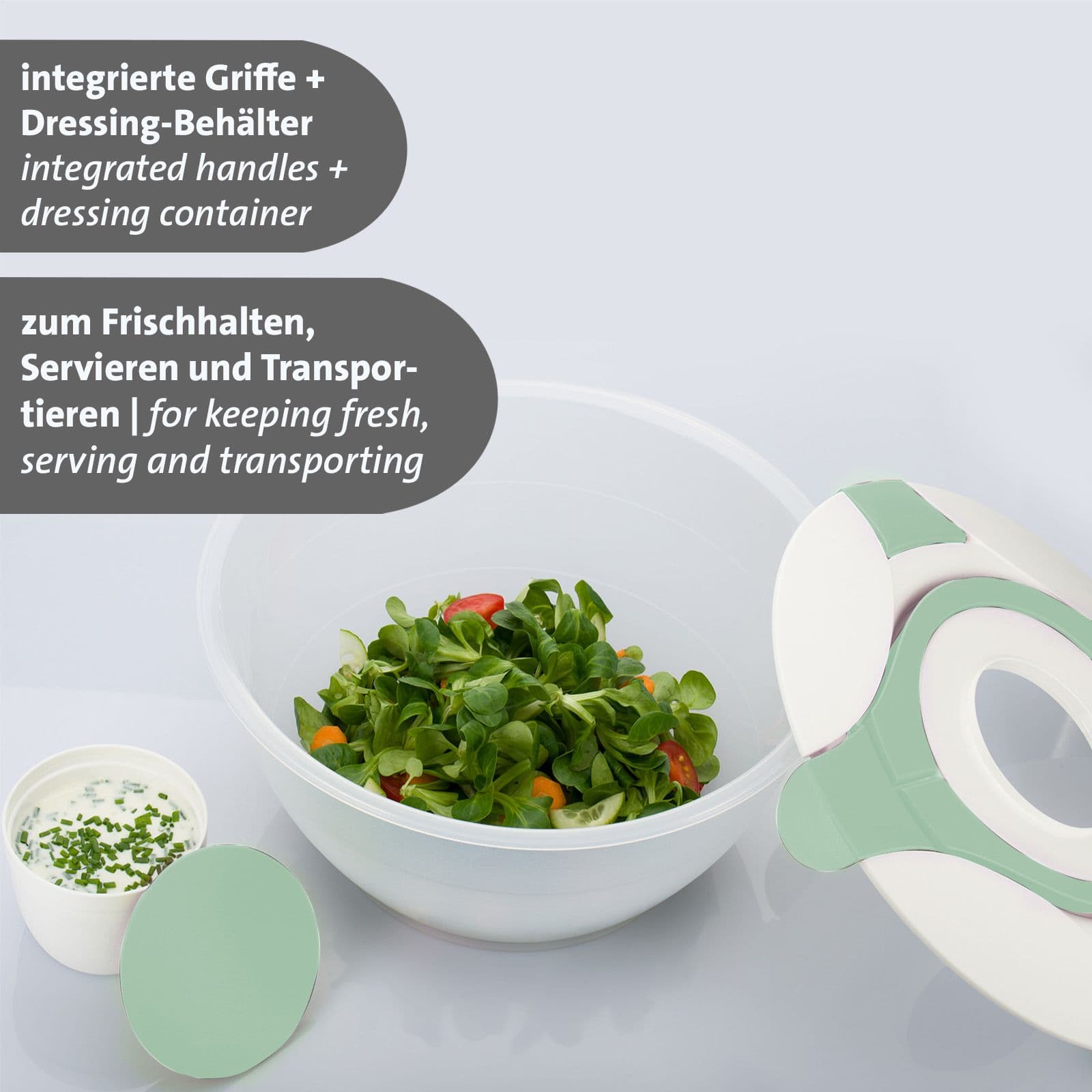 - integrierter Behälter (ca. 0,3l) für Dressing