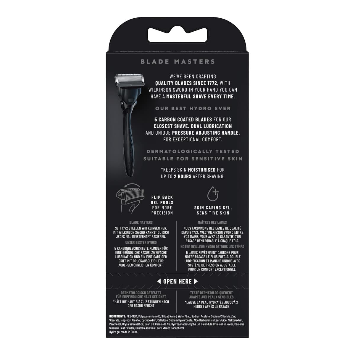 Wilkinson Sword Hydro – unsere sanfteste Rasur! Erlebe eine Rasur mit intensiver Feuchtigkeit mit dem Hydro 5 Ultimate Rasierer von Wilkinson Sword. Deine Haut wird unsere karbonbeschichteten Klingen und unser einzigartiges feuchtigkeitsspendendes* Gel lieben. Gründlich und ein angenehmes Hautgefühl – unser einzigartiges feuchtigkeitsspendendes* Gel wurde entwickelt, um vor Hautirritationen zu schützen. Die zweifache Lubrikation vor und nach der Klinge und ein einzigartiger Griff mit Druckausgleich sorgen für außergewöhnlichen Komfort bei deiner Rasur. Für höchste Präzision beim Stylen oder an schwer erreichbaren Stellen, klappe einfach die Gel-Pools nach hinten (Flip-Trimmer). Dermatologisch getestet und für empfindliche Haut geeignet. Erlebe die nächste Stufe der Hautpflege beim Rasieren mit Hydro 5. Wilkinson Sword – Blade Masters since 1772. *Hält die Haut bis zu 2 Stunden nach der Rasur feucht.
