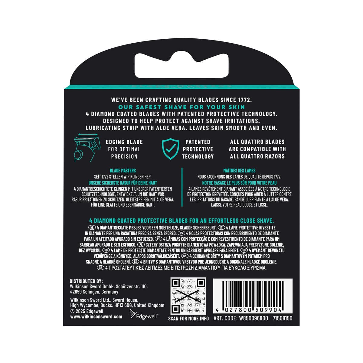 Die Wilkinson Quattro Titanium Sensitive Klingen sind für eine gründliche und angenehme Rasur konzipiert. Sie kombinieren vier Klingen mit einem Gleitstreifen für ein sanftes Gefühl auf der Haut.