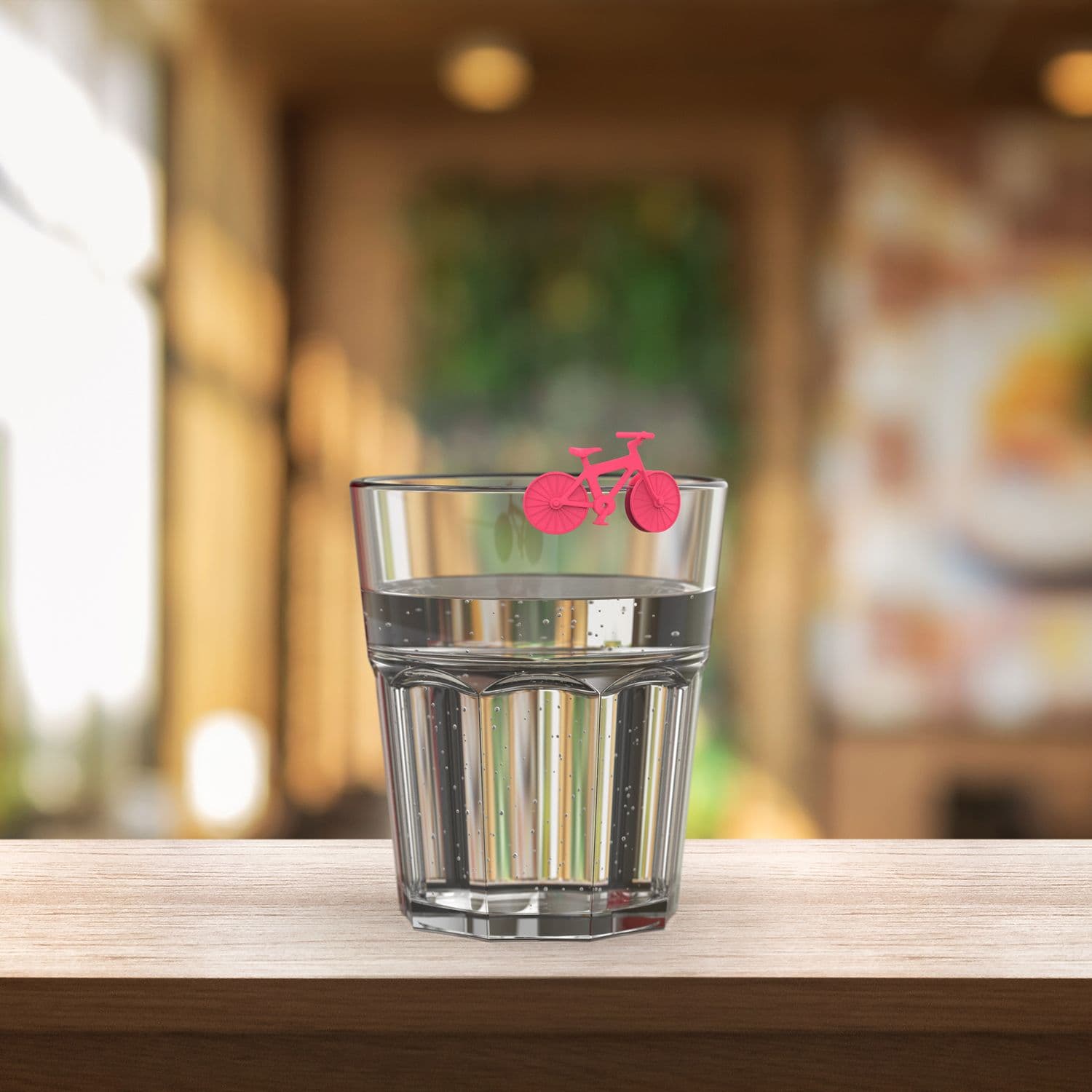 Glasmarkierer mit Fahrrad-Design. Einfach den Glasmarker an den Glasrand hängen, Farbe merken und es gibt keine Verwechslungen mehr. 6 Glasmarker im Set enthalten.