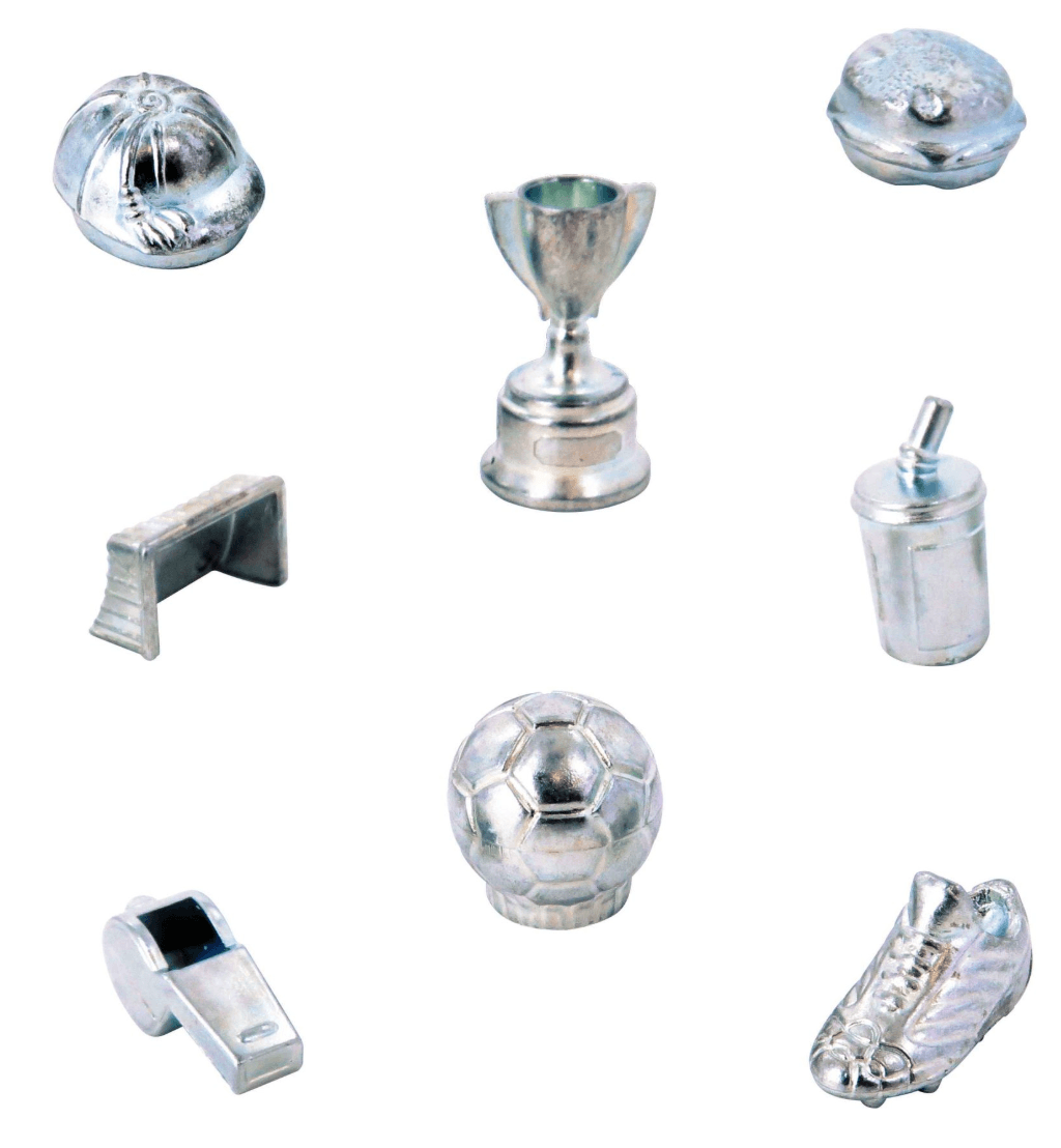 Individuell gestaltetes Spielbrett, Spielfiguren und Karten im Fußball-Design