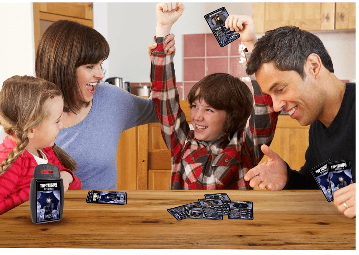 Vergleiche die Figuren in Kategorien wie Cleverness, Mut, Geheimnisfaktor, Beliebtheit und dem exklusiven Top-Trumps-Faktor. Wer hütet die größten Geheimnisse? Wer behält im Chaos einen kühlen Kopf? Das Spiel ist ideal für unterwegs, zu Hause oder als Geschenk für Fans der Serie.