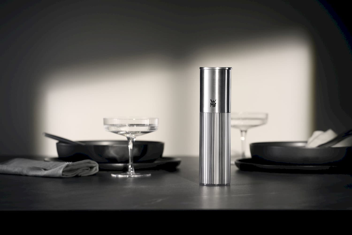 In der Küche oder direkt bei Tisch, für Salz, Pfeffer und viele weitere Gewürze – die Signature Pro Gewürzmühle von WMF vereint stilsicheres Design mit der Präzision eines hochwertigen Keramikmahlwerks. Der Mahlgrad der Mühle ist nach Belieben von fein bis grob einstellbar, ein magnetischer Deckel schützt sowohl das Mahlwerk vor Feuchtigkeit als auch das Aroma im Inneren. Obendrein erleichtert die durchdachte Bauweise das Befüllen und verhindert außerdem unerwünschte Gewürzreste auf Oberflächen.
