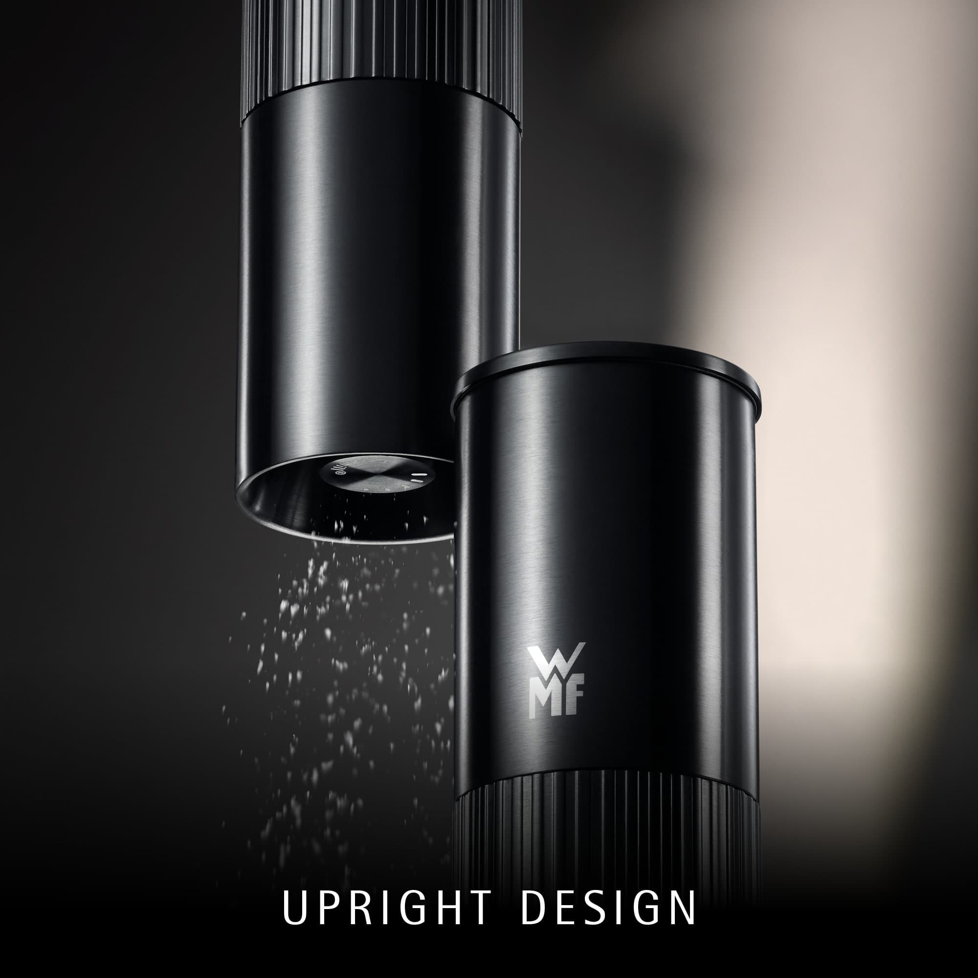In der Küche oder direkt bei Tisch, für Salz, Pfeffer und viele weitere Gewürze – die Signature Pro Gewürzmühle von WMF vereint stilsicheres Design mit der Präzision eines hochwertigen Keramikmahlwerks. Der Mahlgrad der Mühle ist nach Belieben von fein bis grob einstellbar, ein magnetischer Deckel schützt sowohl das Mahlwerk vor Feuchtigkeit als auch das Aroma im Inneren. Obendrein erleichtert die durchdachte Bauweise das Befüllen und verhindert außerdem unerwünschte Gewürzreste auf Oberflächen.