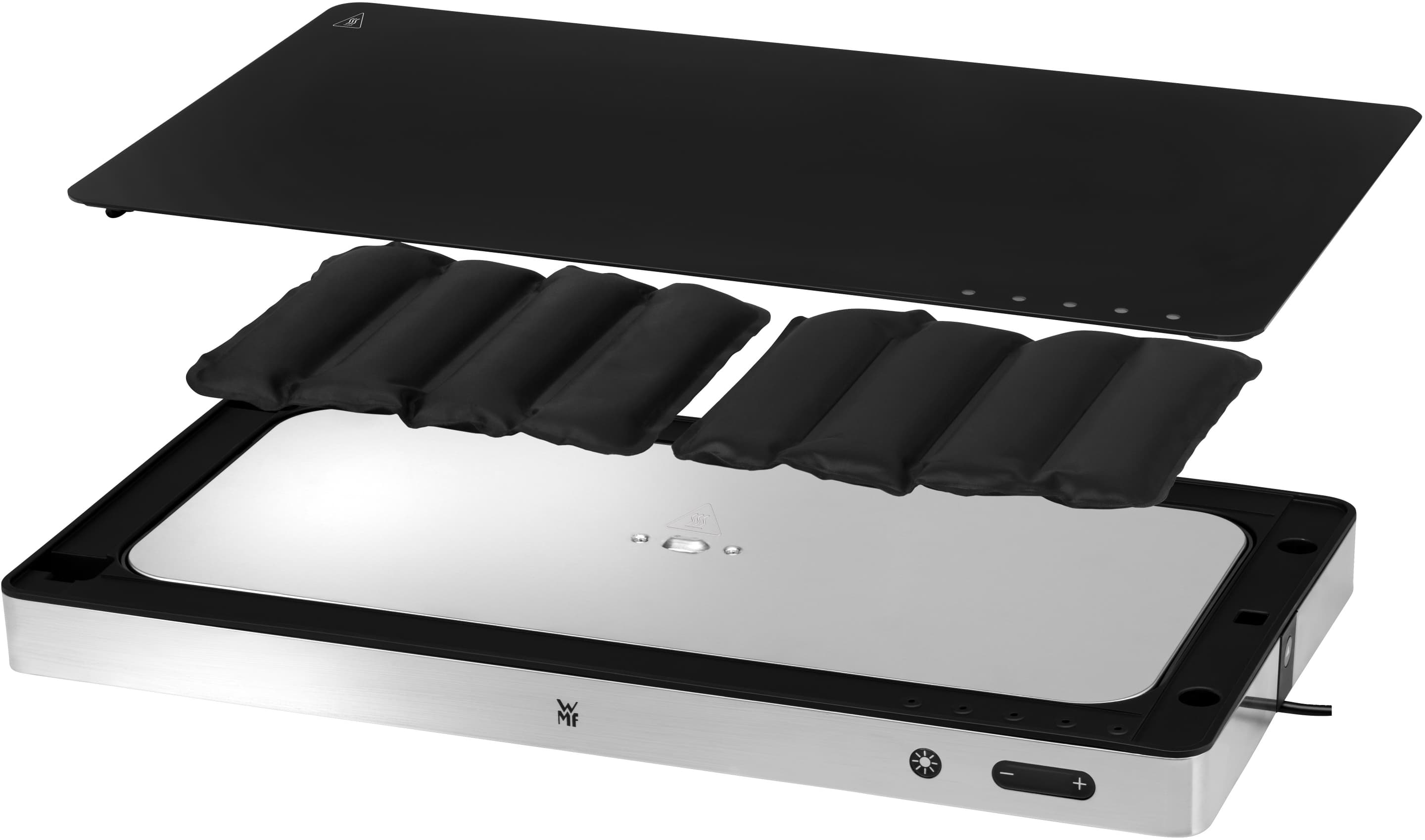 Die elegante WMF Ambient Kühl-& Warmhalteplatte bereichert mit ihrer stilvollen Erscheinung in mattem Cromargan® und mit hochwertiger Glasoberfläche jeden Tisch und setzt die darauf warmgehaltenen oder gekühlten Speisen gekonnt in Szene. Ob kleine, warme Köstlichkeiten wie Pizza oder Quiche Lorraine, Suppen oder auch ein Bratentopf: