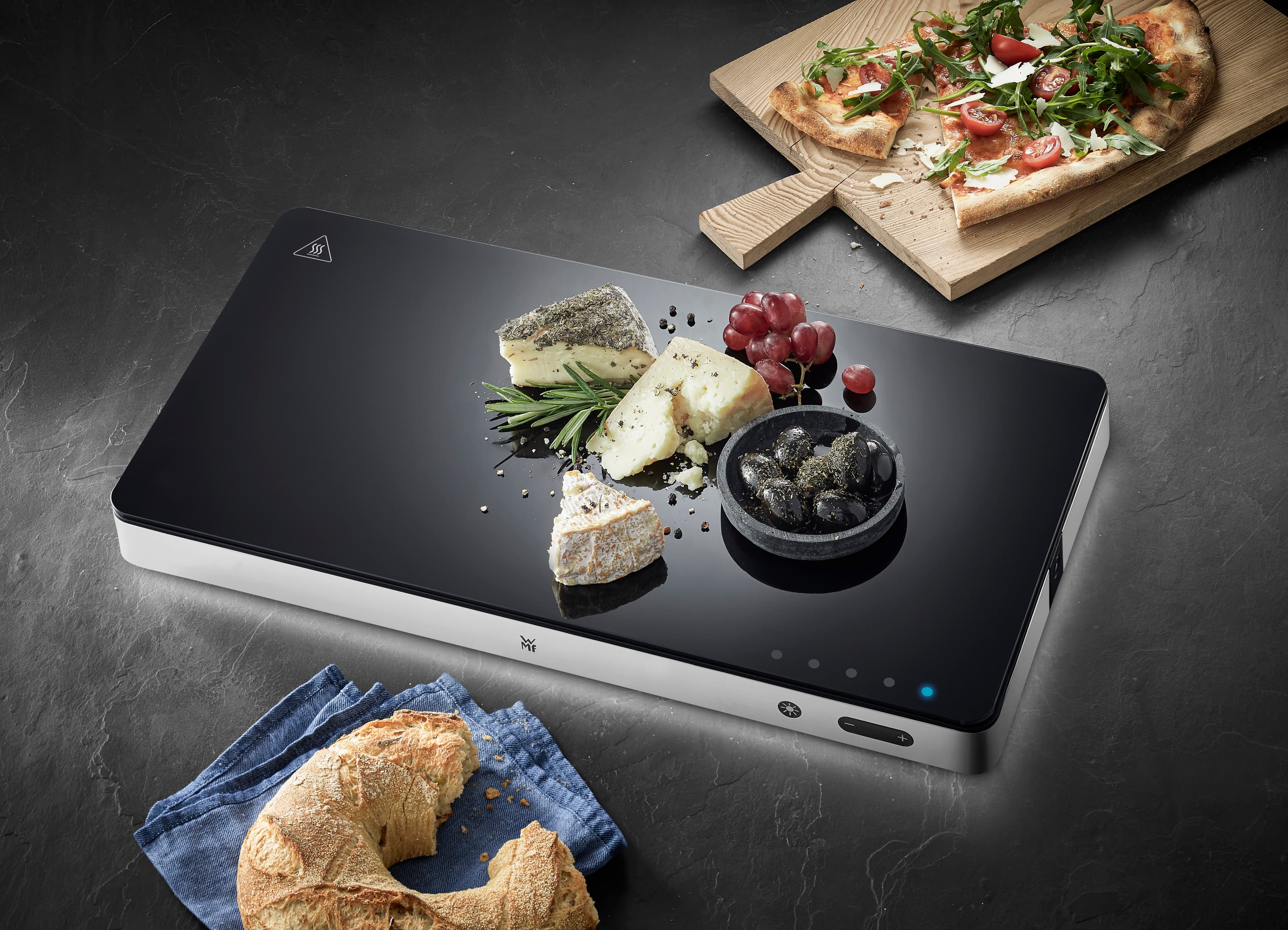 Dank der separaten Kühlelemente bleiben aber auch Käse, Obst und Desserts bis zu 2 Stunden frisch und auf optimaler Temperatur. Für ganz besondere Effekte bei Dämmerlicht sorgt dazu das jederzeit frei zuschaltbare WMF Ambient Light, das Speisen sowie die Umgebung in ein ganz besonderes Licht rückt– nach Wahl in 3 Helligkeitsstufen und kinderleicht bedienbar mit WMF Easy Touch Technologie.