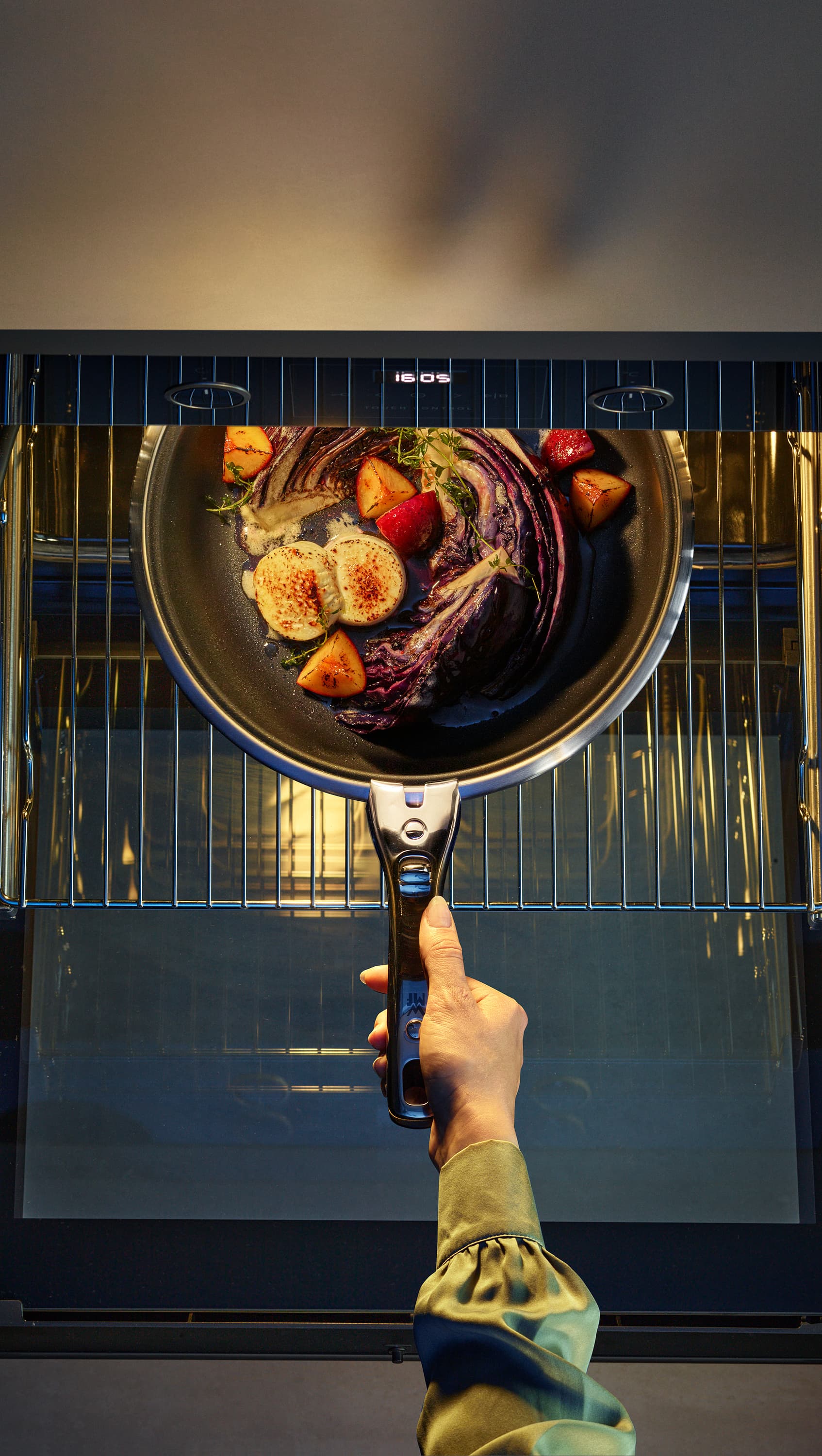 Die optimale Lösung für kleinere Küchen mit wenig Stauraum und gleichzeitig multifunktional einsetzbar: Die Click&Serve Sauteuse mit 24 cm Durchmesser gehört zur ersten Kochgeschirr-Serie von WMF, bei der Kochgeschirr, Deckel und Griff einzeln zu erwerben sind. Vom Herd direkt in den Backofen, vom Backofen direkt auf den Tisch und sollte etwasübrigbleiben, direkt vom Tisch in den Kühlschrank: Der abnehmbare und mit jedem Kochgeschirr der Serie kompatible Griff erlaubt in jedem Fall eine platzsparende Unterbringung. Dazu verfügt erüber 10 Kilogramm Tragkraft und lässt sich genauso einfach, schnell und sicher an jeder beliebigen Stelle des jeweiligen Kochgeschirrs anbringen. Auch die passenden Deckel aus hochwertigem Glas sind dank der Schmetterlingsgriffe aus hochwertigem Kunststoff und Edelstahl mühelos stapelbar. Gefertigt aus genauso strapazierfähigem wie elegantem Cromargan®: Edelstahl Rostfrei 18/10,überzeugt die Sauteuse auch mit einem breiten Schüttrand für tropffreies Ausgießen von Flüssigkeiten und dem energiesparendem TransTherm®-Allherdboden, der auch für Induktionsherde geeignet ist. Sauteuse und Deckel dürfen natürlich auch zur unkomplizierten Reinigung in die Spülmaschine. Für den Griff empfiehlt WMF Handreinigung.