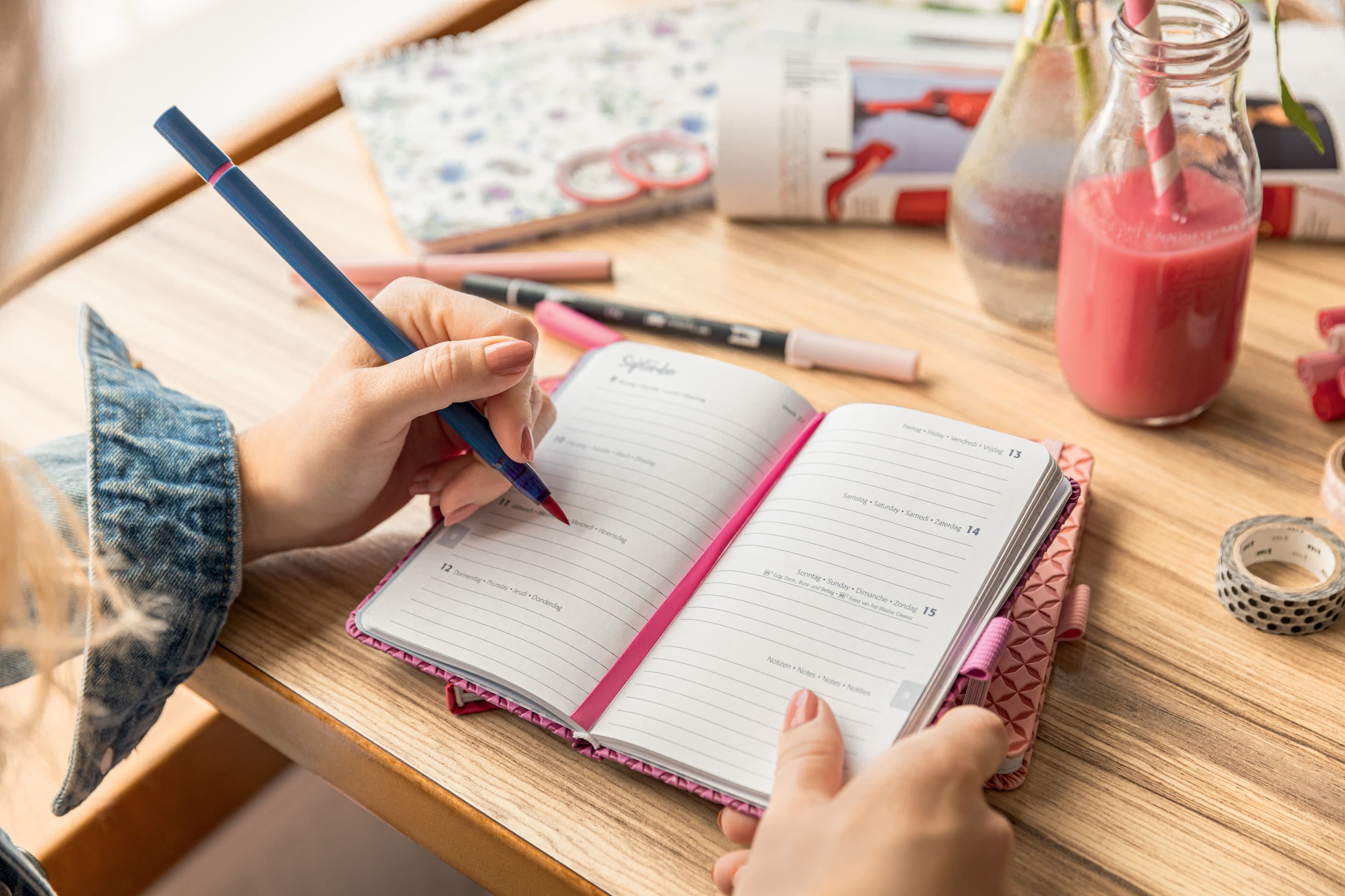 Immer stylisch organisiert - mit dem angesagten Jolie Wochenkalender für 2025 (Kalendarium: 2 Seiten = 1 Woche, DE/GB/FR/NL) im Format ca. A6 (9,5 x 15 cm) mit 174 Seiten (davon 12 Blätter perforiert). Der stabile Hardcover-Einband in indigo blue garantiert Stabilität beim Schreiben. Mit dem fröhlichen Buchkalender von Jolie haben Sie Ihre Planung im Griff. Termine, Dates, ToDo"s: In diesem Wochenkalender mit zahlreichen nützlichen Features wie Gummiband, Stiftschlaufe und Einsteckfach ist alles hübsch untergebracht. Der handliche Kalender im Westentaschenformat ist das Trendpiece für Ihre Termine und Notizen. Organisieren und individualisieren Sie mit dem beigelegten Stickerbogen Ihre Notizen, Skizzen und Entwürfe, wie es Ihnen gefällt. Der schöne Kalender ist auch das perfekte Geschenk im Kollegen-, Freundes- und Familienkreis.