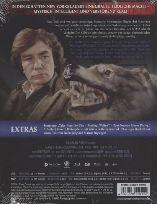 | Zusatzinfos / Bonusmaterial beim Film dabei | Featurette Tales from the City – Making Wolfen, Tom Noonan Uncut Dialog, Trailer, Teaser, Bildergalerie, Booklet |