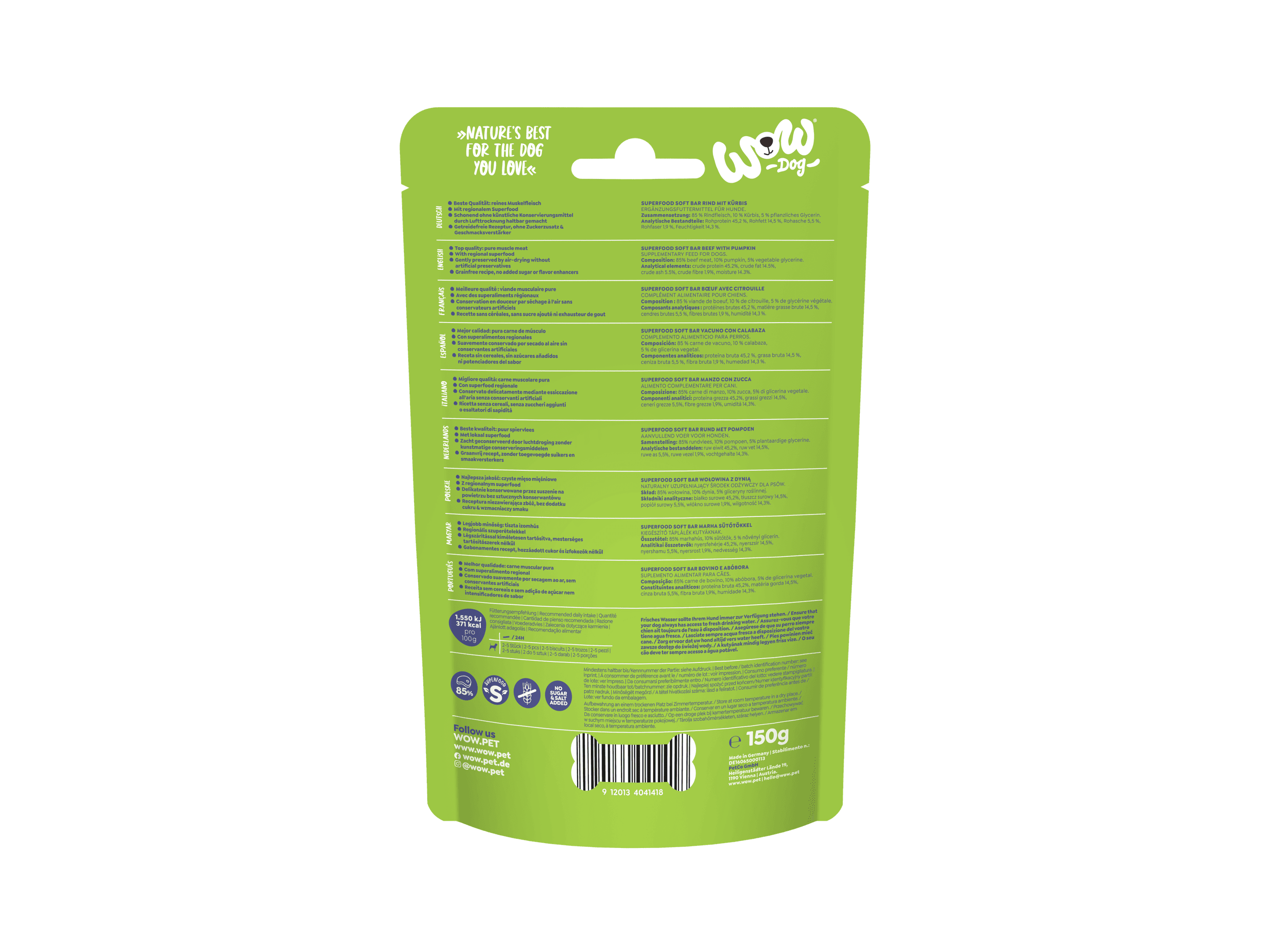 WOW Hundesnack Superfood Soft Bar Rind mit Kürbis