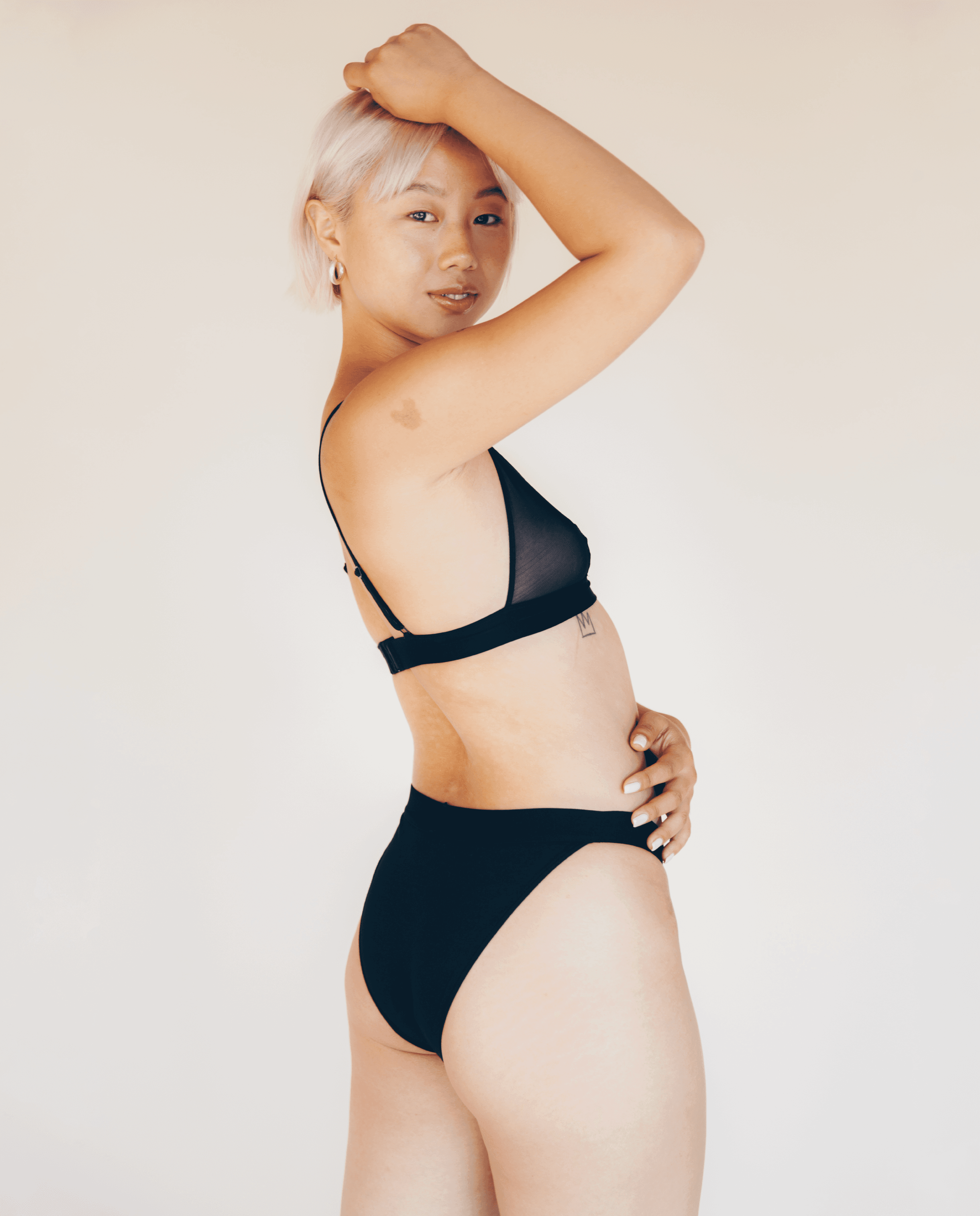 Willst du dich manchmal einfach nur normal fühlen, wenn du deine Periode hast? Okay, vielleicht ist das nicht so einfach, aber wie wäre es mit einem Periodenprodukt, das sich normal anfühlt?   Unsere Periodenunterwäsche im Bikini-Stil fühlt sich an wie deine gewohnte Unterwäsche, schützt dich aber während deiner Periode. Sie hat eine bequeme Passform & schmeichelt deinen Hüften mit einem hoch geschnittenen und dehnbaren Gummiband.   Trage die Unterwäsche allein oder als zusätzliches Backup mit anderen Produkten. Der Einsatz ist super dünn und dennoch unglaublich saugfähig & auslaufsicher mit einer Aufnahmefähigkeit von bis zu 3 normalen Tampons.   Keine Nässe, kein Auslaufen, keine Sorgen! Ethisch produziert in Portugal & hergestellt aus Bio-Baumwolle.