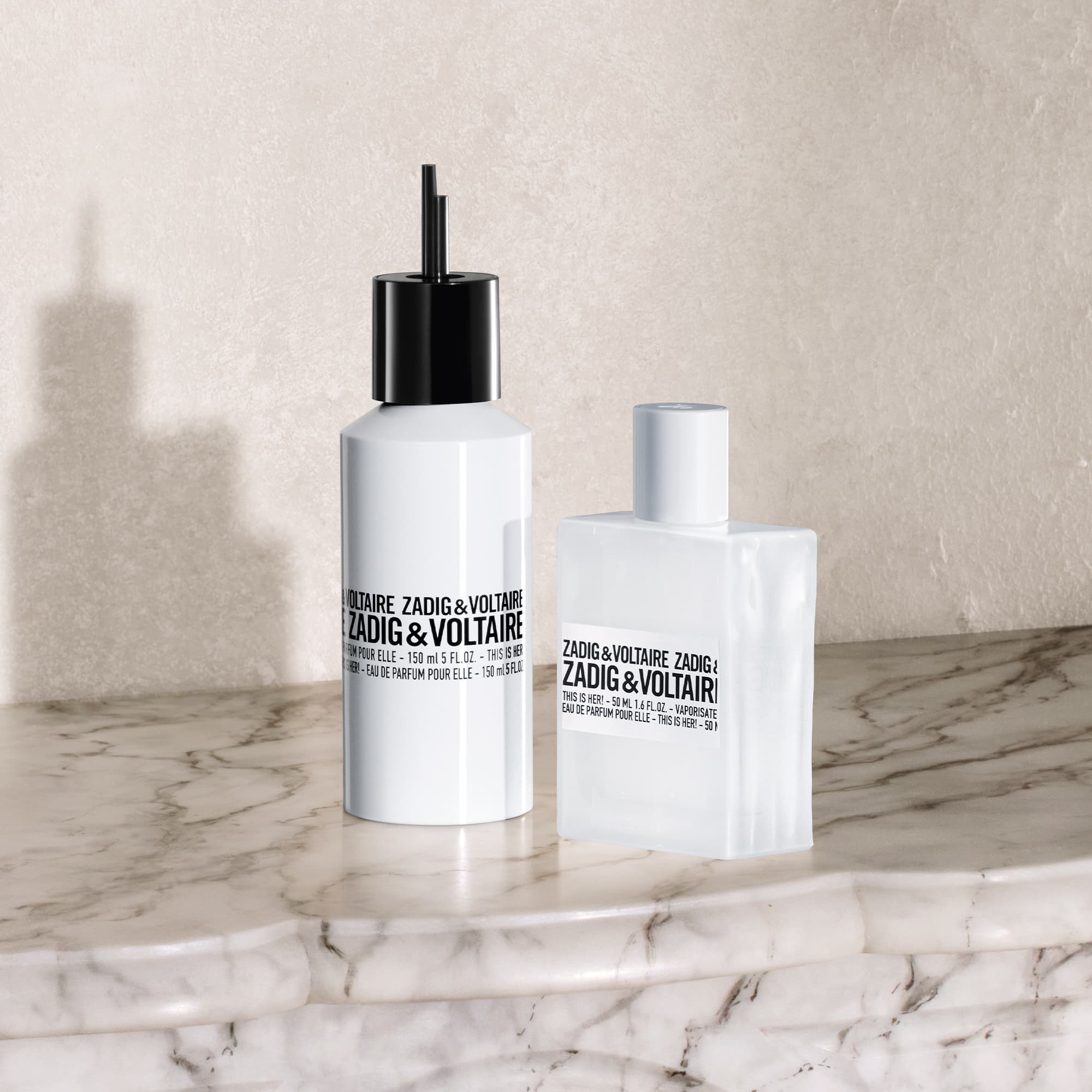 This is Her! Das neue Eau de Parfum für Frauen von ZADIG& VOLTAIRE. Eine sinnliche Mischung aus Vanille und Kastanie, kombiniert mit einer rockigen Basisnote aus Sandelholz. Der Duft einer freien, rebellischen Frau!