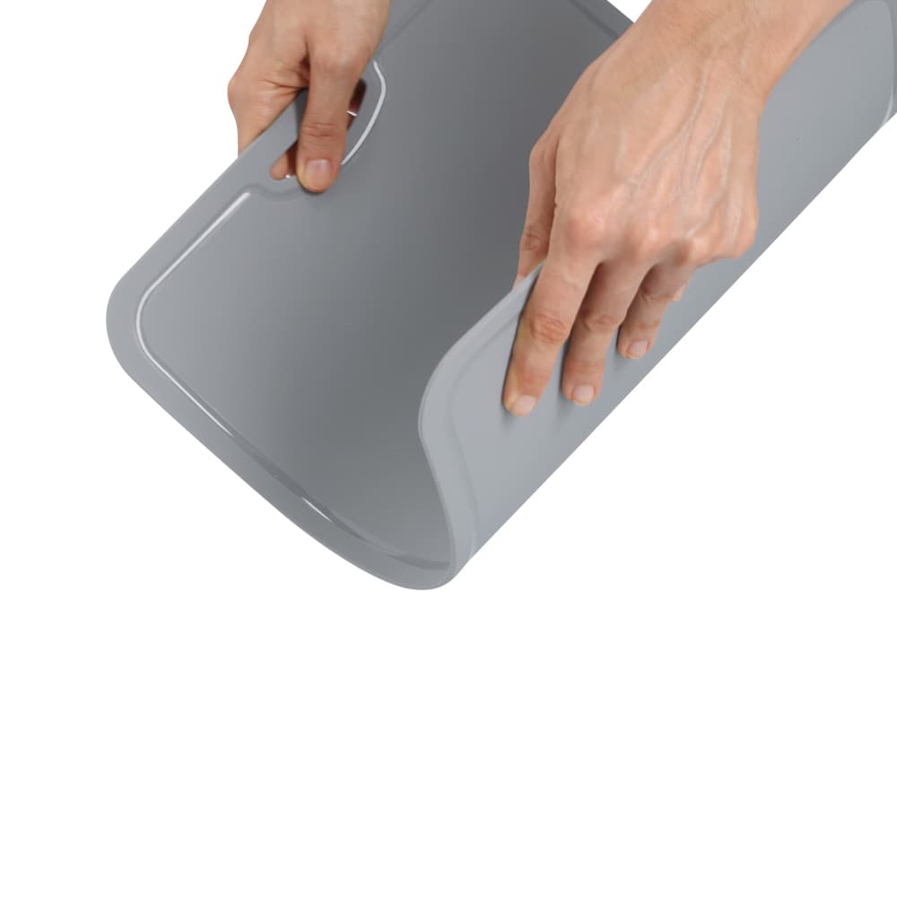 Das flexible Must-have für jede Küche. Die Schneidematte ist kratz- und abriebfest, dabei besonders praktisch in der Handhabung. Durch das flexible Material lässt sie sich leicht biegen, sodass geschnittene Zutaten ganz einfach in Töpfe oder Schüsseln gelangen.