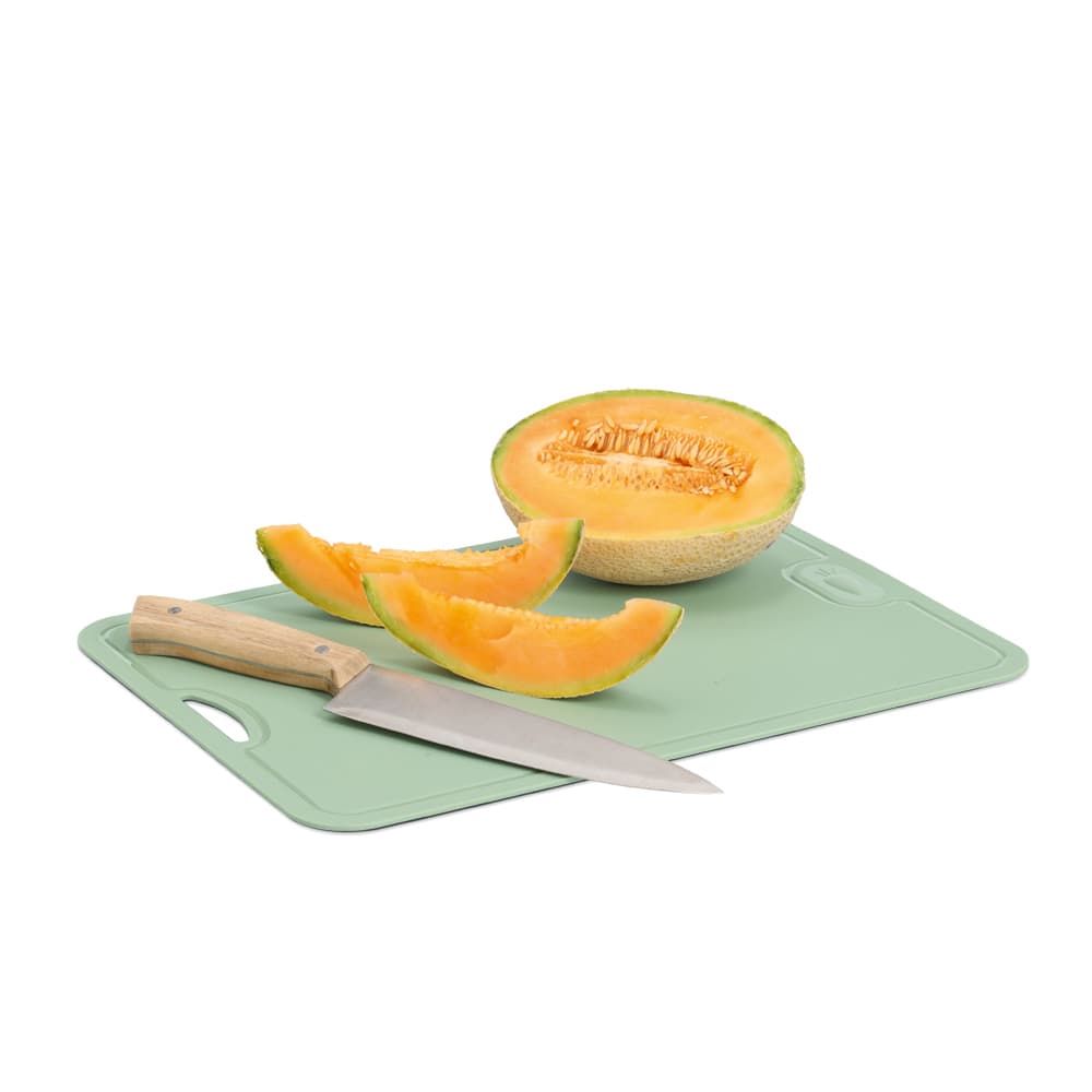 Dank des Materials aus thermoplastischem Polyurethan ist die Matte nicht nur robust, sondern auch biegsam, was das Umfüllen des Schnittguts in Töpfe oder Schalen erleichtert. Die integrierten Griffmulden sorgen für eine komfortable Handhabung. Mit ihren Maßen von 39 x 28 cm bietet die Unterlage ausreichend Platz für diverse Zutaten.