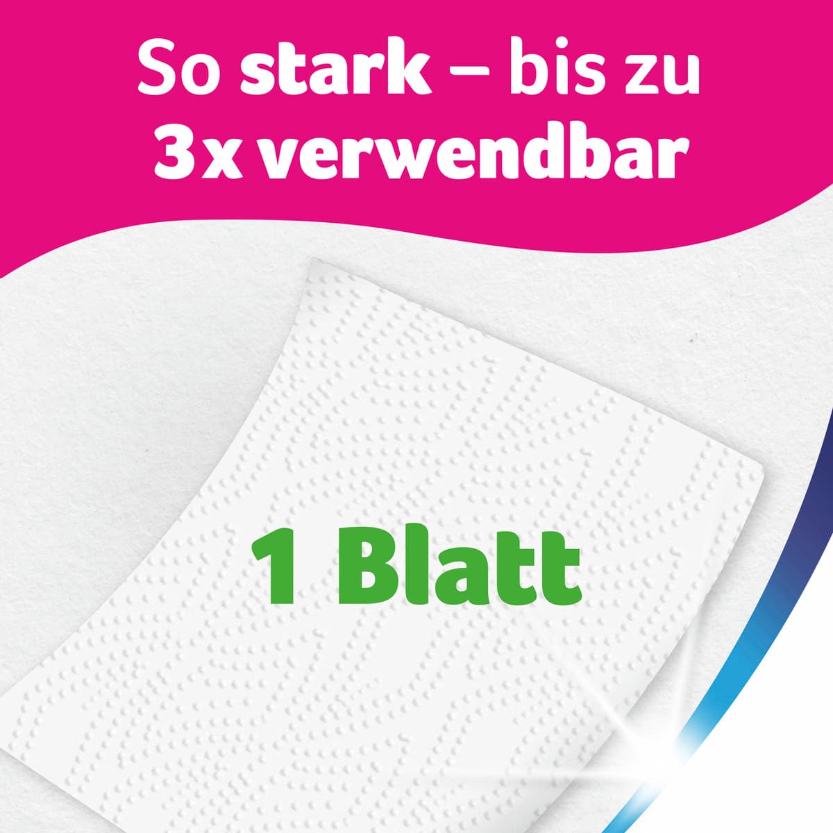 Das neue Zewa Wisch&Weg: Die innovative Power-X-Struktur hält die Küchenrolle stark und reißfest, während ihre weichen Kissen besonders gut absorbieren. So können die Haushaltstücher durch die verbesserte Wabentechnologie Flüssigkeit aufnehmen - ganz ohne zu reißen. Es eignet sich als perfekter Helfer für den Küchenalltag, ist im Haushalt vielseitig einsetzbar und das Originalüberzeugt auch optisch mit der Markenbordüre. Mit den Haushaltstüchern von Zewa Wisch&Weg lässt sich im Handumdrehen jeder Schmutz und jeder Fleck entfernen– ob auf der Kleidung, der Küchenablage oder dem Boden. Das robuste Papier eignet sich zum Aufwischen, Schrubben, Polieren und Aufsaugen, ohne dabei Fussel zu hinterlassen. Durch die optimierte Perforation lassen sich die einzelnen Tücher ganz leicht abreißen und es wird kein Papier verschwendet. Durch die hervorragende Qualität wurden die Zewa Wisch&Weg Haushaltstücher im Rahmen einer Umfrage des brancheführenden Magazins Lebensmittel Praxis (LP) von den Verbrauchern zum Produkt des Jahres 2019 gewählt. Inhalt: 4 Rollen